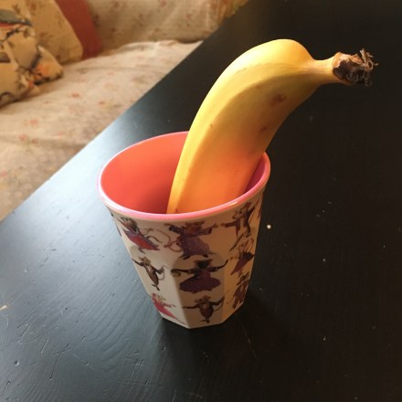 By popular demand, a recreation of one of the out takes of the banana selfie from Monday. I ditched the original because a) I looked like shit and b) because I was worried it looked wildly pornographic/disturbing and my 8yo girl was looking over my shoulder at the time so I just hit DELETE DELETE DELETE in a complete panic.